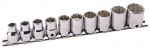 DRAPER EXPERT 10 PIECE 3/8\" SQUARE DRIVE HI-TORQ BI-HEXAGON SOCKETS ON RAIL