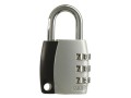 3 digit resettable combination padlock, press level to open.